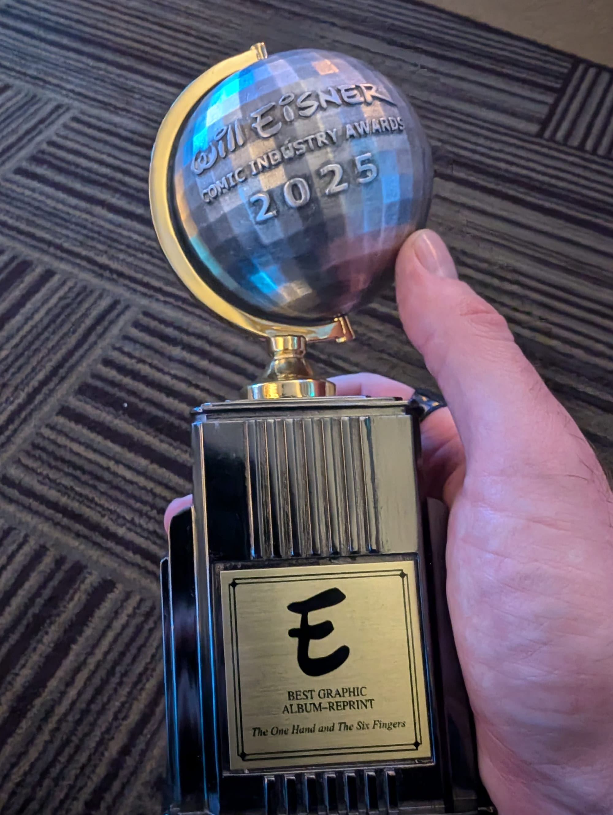 Since I last wrote to you, a lot has happened. One big thing is that The One Hand & The Six Fingers won an Eisner award for Best Graphic Album - Reprint. This was very much a surprise to the whole team. We didn't even have an inkling we were going to be nominated. Can't say we weren't chuffed. Thanks to all who voted.