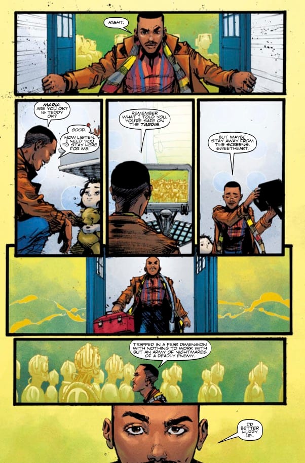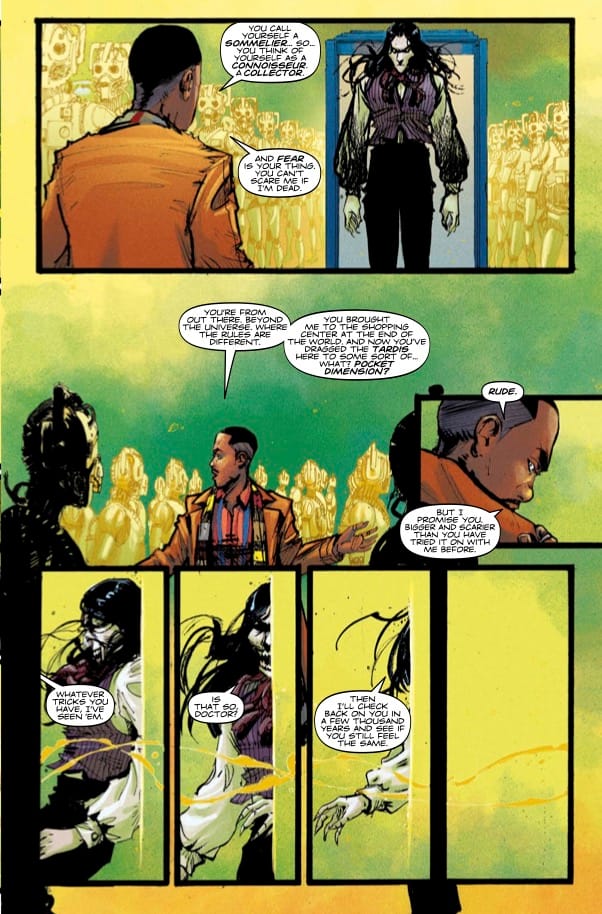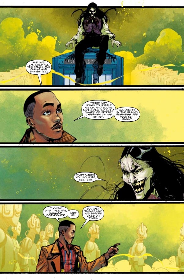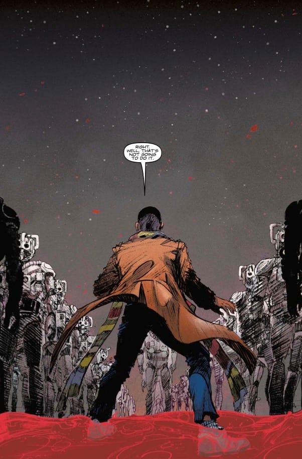 Also also from me this week: Doctor Who issue 3. The penultimate issue of this 15th Doctor story with Kelsey Ramsay, and possibly my favourite issue of the story. A godlike being toys with the Doctor, and some lovely surreal imagery with Kelsey's rusted, Shinya Tsukamoto-esque Cybermen. My good friend Will O'Mullane was kind enough to send me some preview pages for the issue, so here they are: