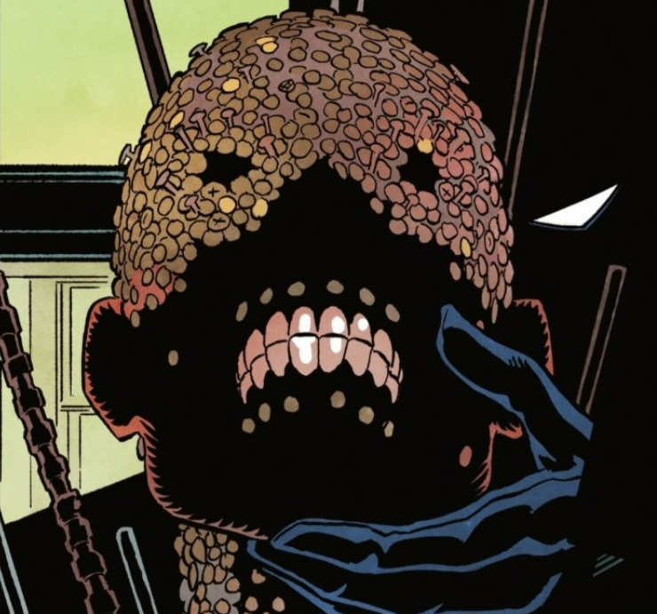 Batman: Dark Patterns #2 came out last week. The issue reveals more about the Wound Man- who appears to have captured hearts and turned stomachs of those who're reading the book, which is everything we hoped for as a creative team, really. The rallying cry on the book's email chain quickly became "no lips, all teeth," referring to a design note Hayden sent through on a design sheet of the character.